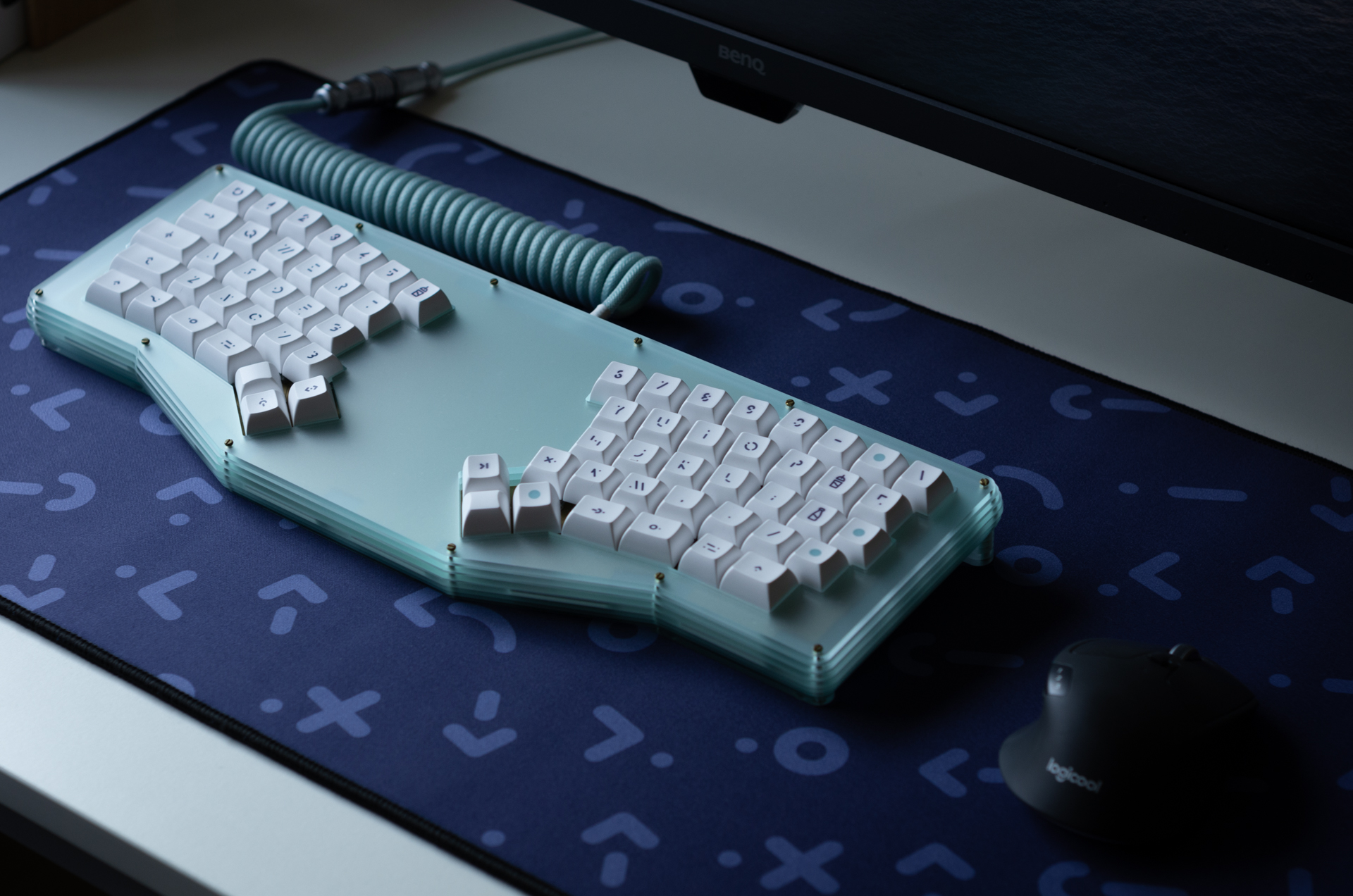 これまでは SteelSeries の QcK mass マウスパッドを使っていた。それに比べると布目は少し粗めだけど、厚みはちゃんとあるし、縁の縫製もしっかりしている。大きさは 90cm×40cm で Reddit とかで見る写真から想像していたより一回り小さかったけど、どちらかというと自分の作ったキーボードがよくある 60% キーボードより一回り大きいのだった。
