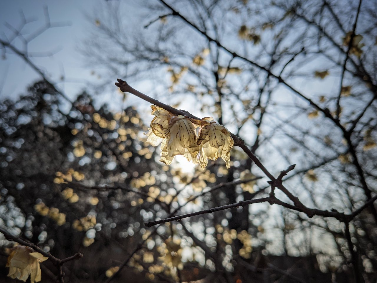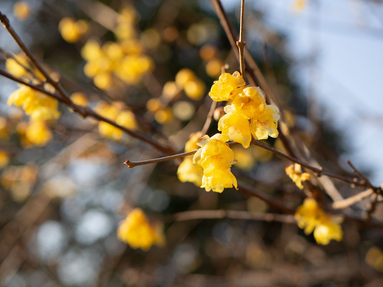 数年前にフィルムカメラにハマっていたとき、被写体を探してお寺まで散歩しに来て、たまたま咲いていたロウバイを撮った。そのとき通りがかった男性が花の名前も教えてくれた。